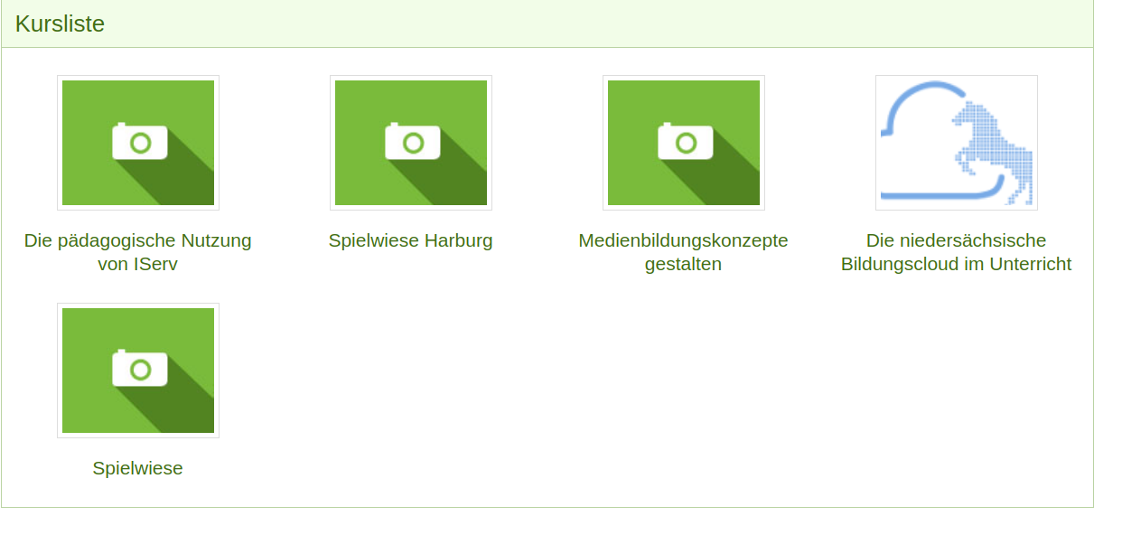 Wenn Sie sich nach einer Unterbrechung neu anmelden, finden Sie Ihren Kurs direkt in Ihrem persönlichen Bereich (hier ein Kurs zur pädagogischen Nutzung von IServ):