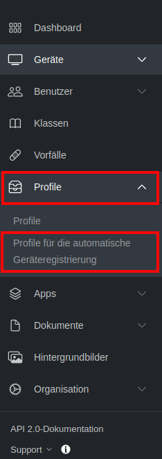 Gehen Sie in Jamf School auf „Profile“ und wählen Sie „Profile für die automatische Geräteregistrierung“.