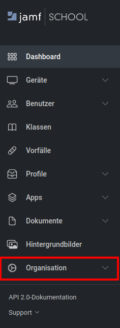 Gehen Sie in Jamf im linken Menu auf Organisation ⇒ Einstellungen. Sie müssen danach etwas nach unten scrollen, um den Punkt Synchronisierung zu finden: