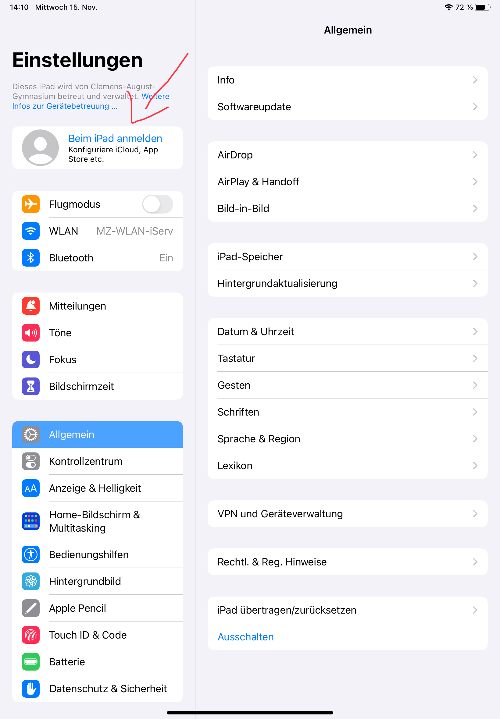 Atingeți „Log in to iPad“ în colțul din stânga sus: