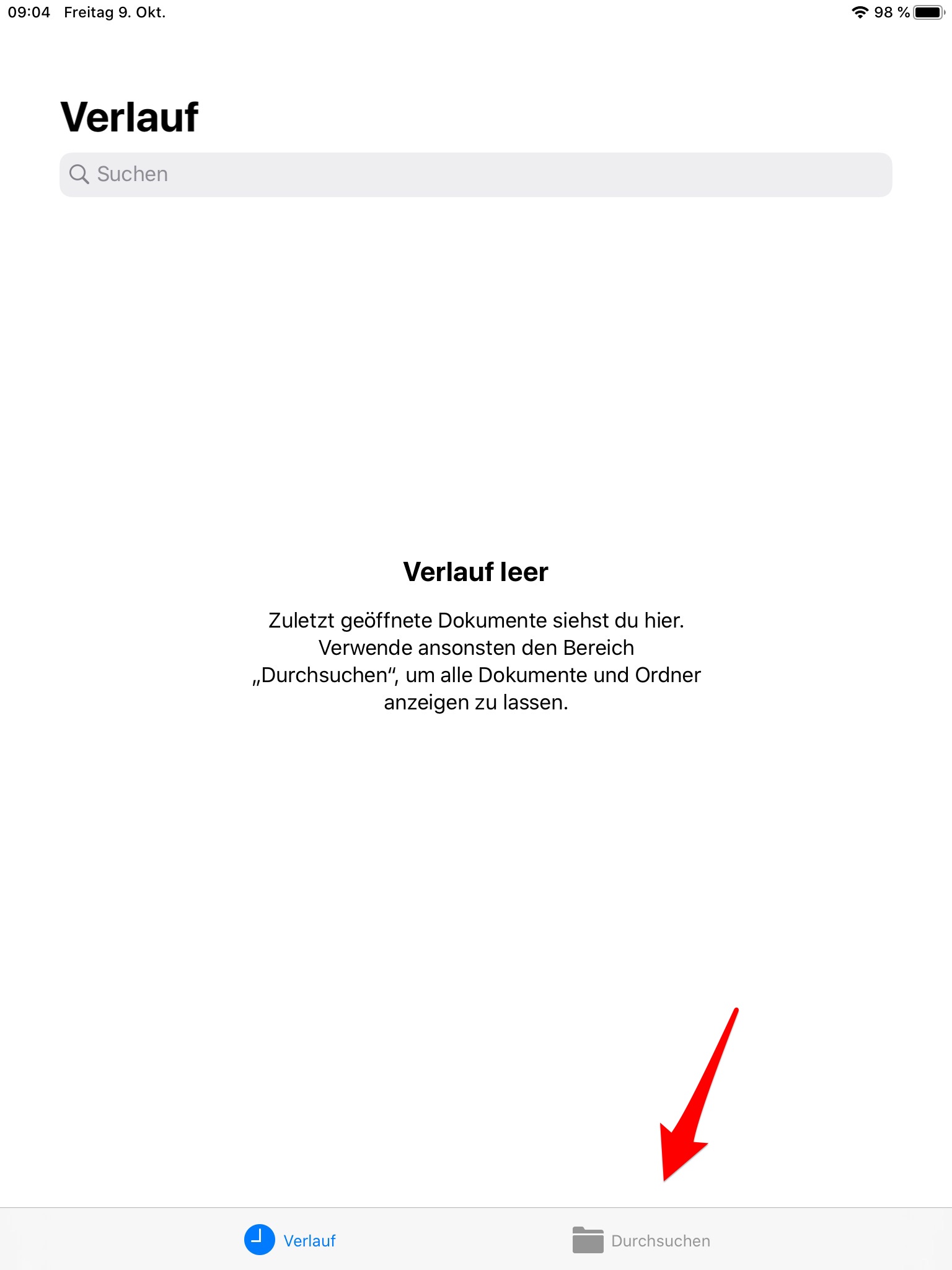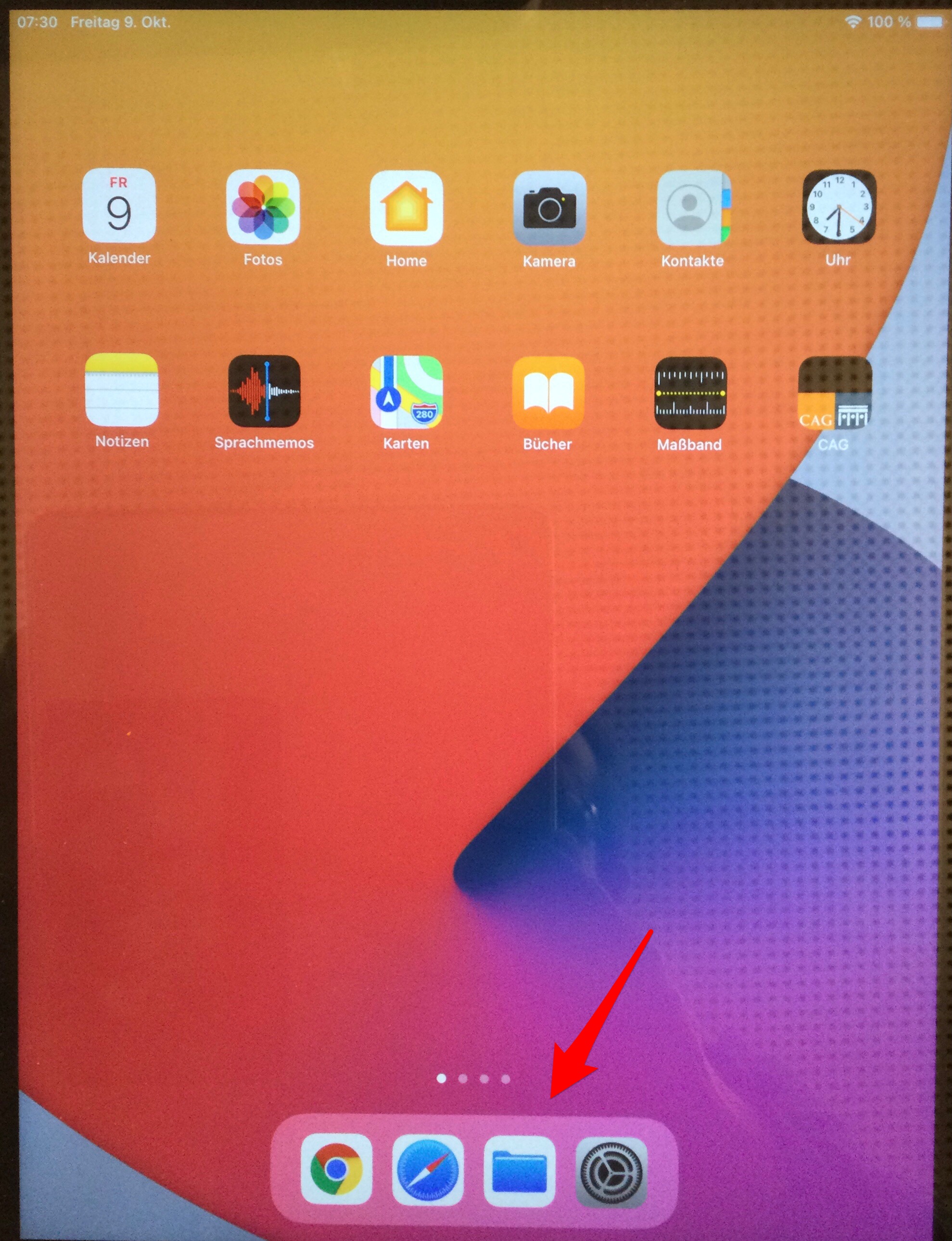 Bei einigen iPads lassen sich Dateien nicht nach dieser Beschreibung auf den IServ legen. Der Datenspeicher von IServ wird schlicht nicht angezeigt.