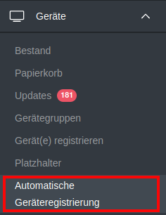 Wählen Sie Geräte ⇒ automatische Geräteregistrierung: