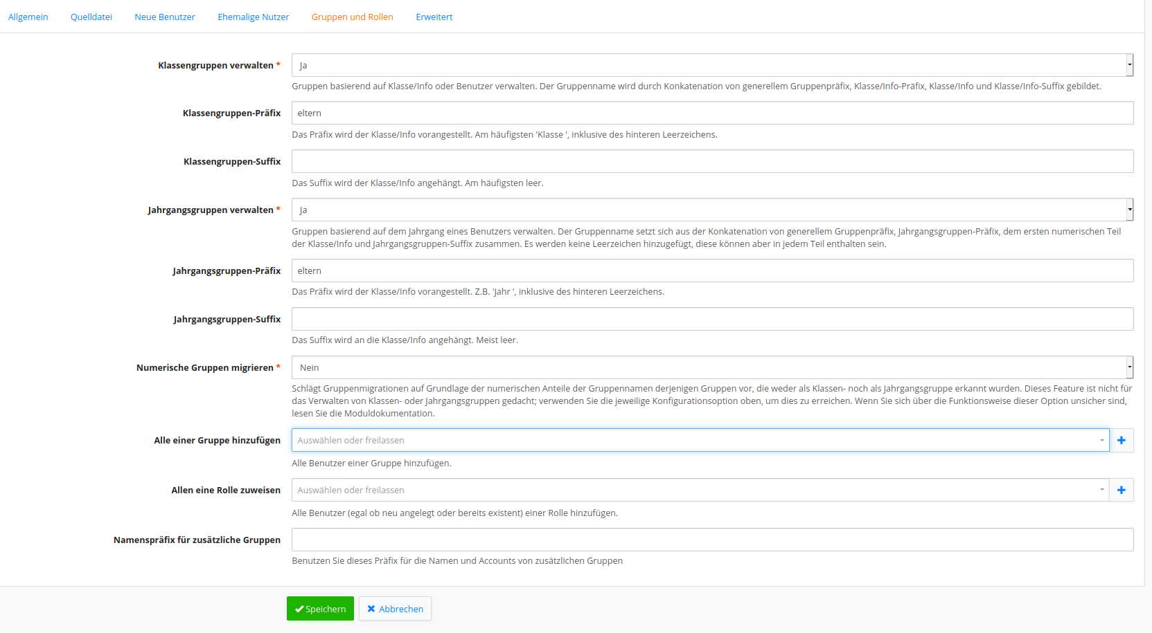 Karteireiter "Gruppen und Rollen"