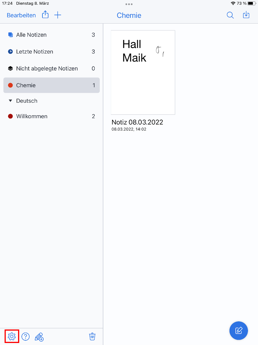 Legen Sie nun erste Notizen an und kontrollieren Sie in Ihrem Ordner auf IServ, ob dort neue Dateien erscheinen.