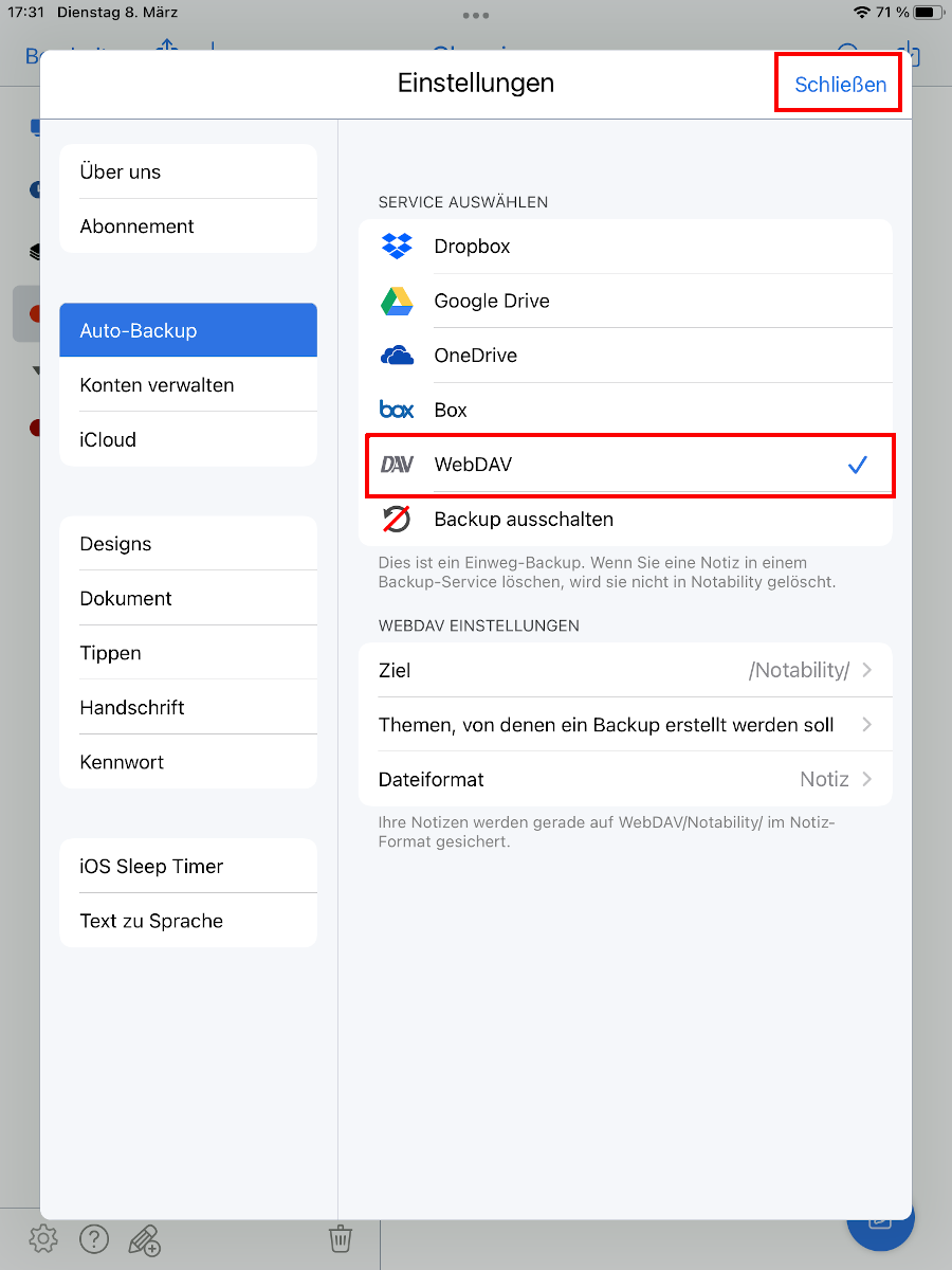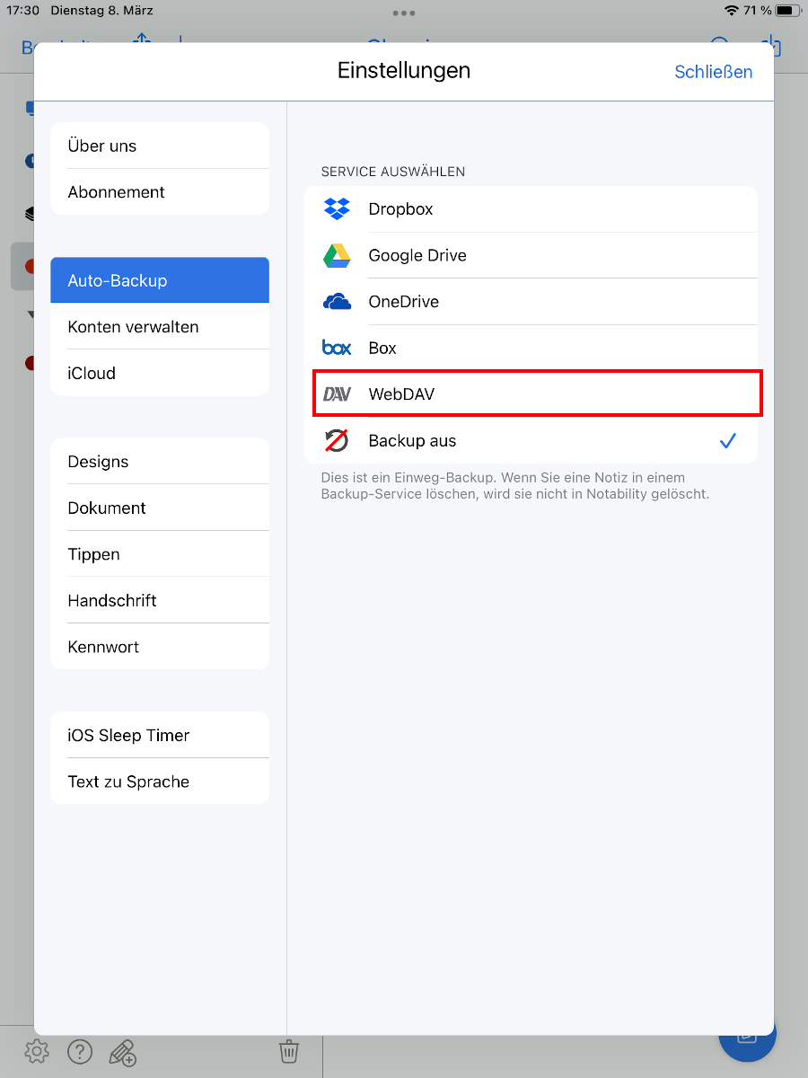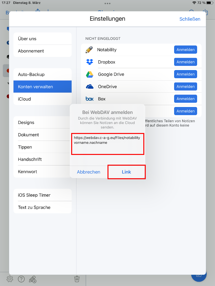 Schritt 2: Syncronisation über IServ in Notability einrichten