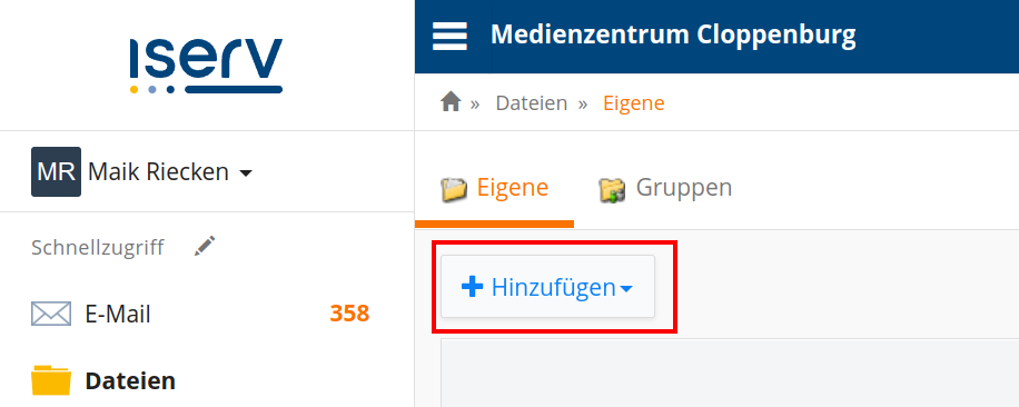 Zunächst ist es sinnvoll, auf IServ einen Ordner anzulegen, der sowohl die synchronisierten Daten als auch das spätere Backup aufnimmt. Der einfachste Weg ist ein Ordner im Hauptverzeichnis. Natürlich könnten z.B. rein technisch Fachschaften Unterrichtsvorbereitungen untereinander in einem Gruppenordner synchronisieren oder Schüler:innen gemeinsame Datenbestände für die Mappenführung vorhalten.