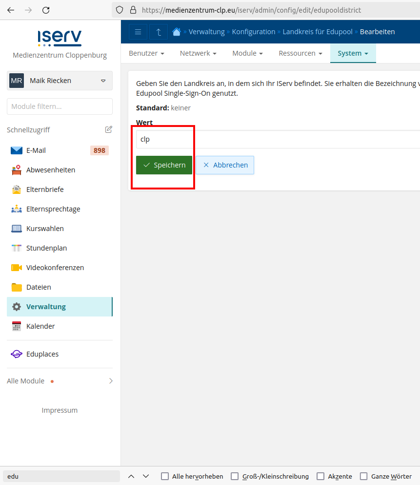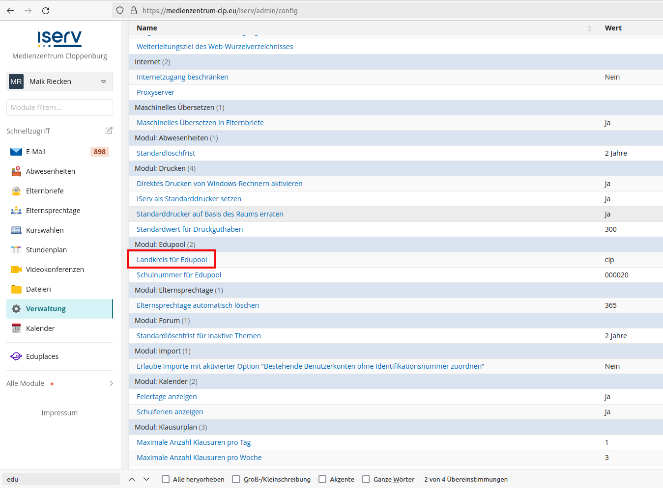 Scrollen Sie etwas nach unten, bis Sie zu den Einstellungen für Edupool kommen.
