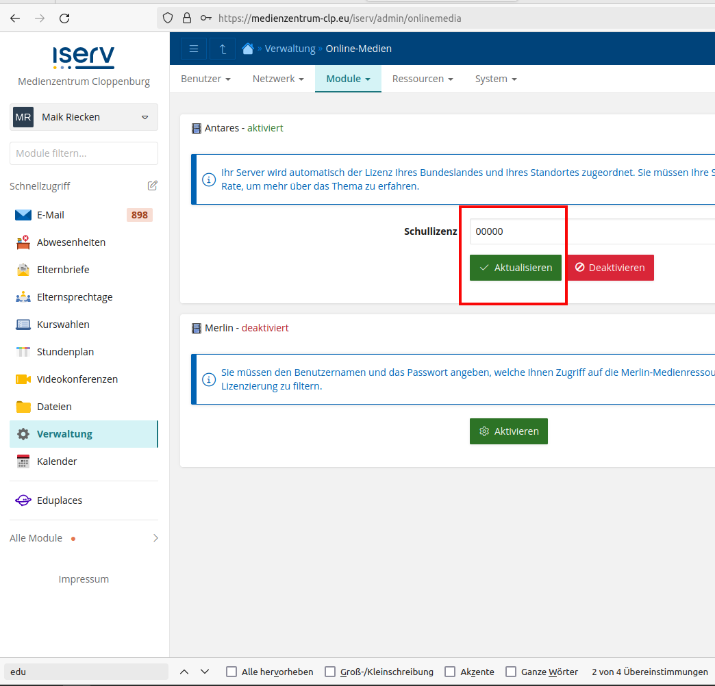 Passen Sie ggf. die Rechte im IServ an, damit Ihre Lehrkräfte auf das Edupool-Modul zugreifen können. Wenn alles geklappt hat, können Sie nun wie bisher ohne Login auf die Onlinemedien zugreifen.