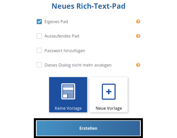 Ein neues Dokument wird mit der Schaltfläche „neues Pad“ angelegt.
