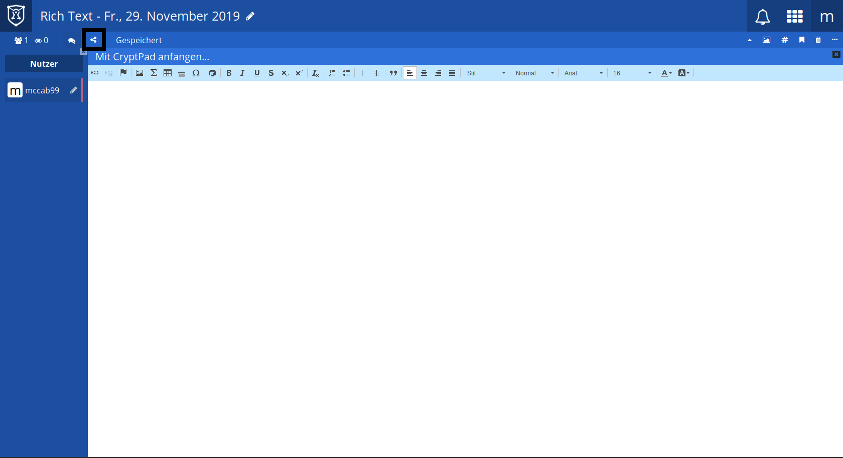 Damit ist ein neues Dokument erstellt - Sie sollten jetzt einen aussagekräftigen Titel vergeben. Dazu klicken Sie oben auf den Stift: