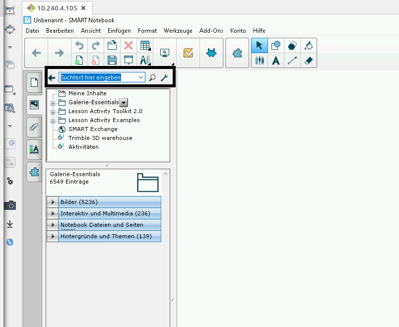 In der Regel ist die SMART-Notebooksoftware zusammen mit den sogenannten „Gallerie Essentials“ installiert. Dieses Paket umfasst eine Vielzahl an Ressourcen wie Bildern, Unterrichtsaktivitäten, 3d-Modell usw..