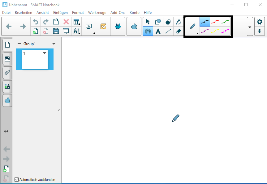 Mit diesen können Sie Farbe, Linienstil und Stiftdicke auswählen.