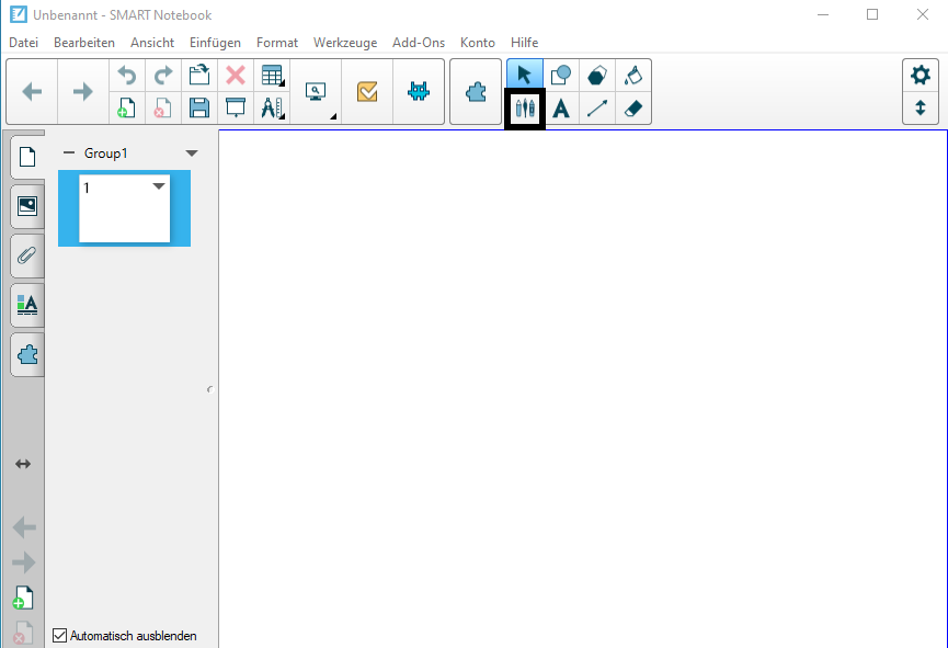 Die Stifte in der SMART-Notebooksoftware ahmen die Funktion von Kreide an einer Kreidetafel nach. Allerdings gibt es auch zusätzliche Funktionen, die sich an der grünen Tafel nur aufwändig realisieren lassen. Über Sinn und Unsinn dieser Funktionen lässt sich streiten. Das Stiftemenu erreichen Sie entweder über eine Schaltfläche in der Software, oder indem Sie einfach einen Stift aus der Ablage nehmen.